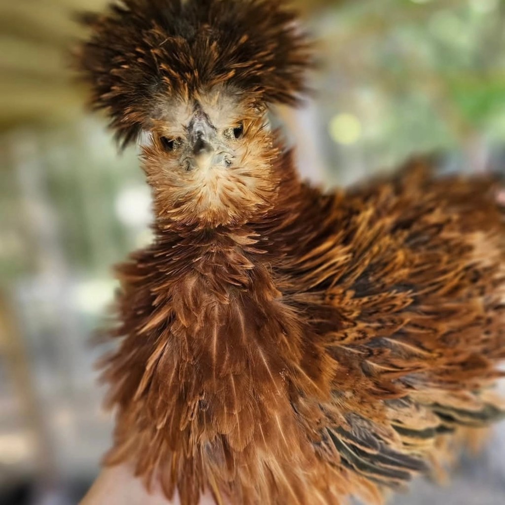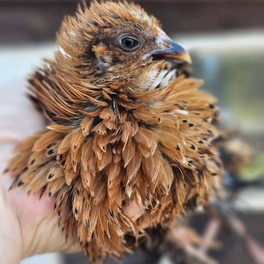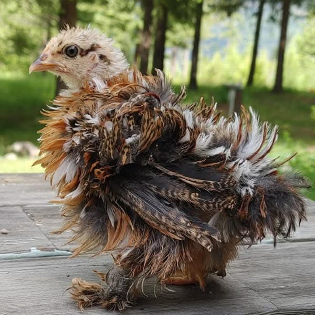 Mille Fleur Bantan Cochins in Smooth and Frizzle. My absolute top favorite breed. These are the birds that convert non bird people into bird people. These are the birds that even the anti-crazy chicken person will like. Voted most likely to perch on your shoulder, sit on your shoe, eat out of your hand, and dance for you. They are excellent brooders and mothers. I put specific focus on color and pattern and through years of selective breeding, I have achieved what I desire to see in my lines. I highly recommend these birds.