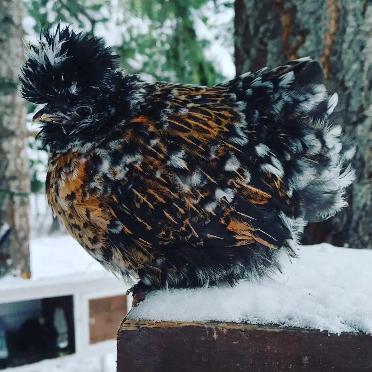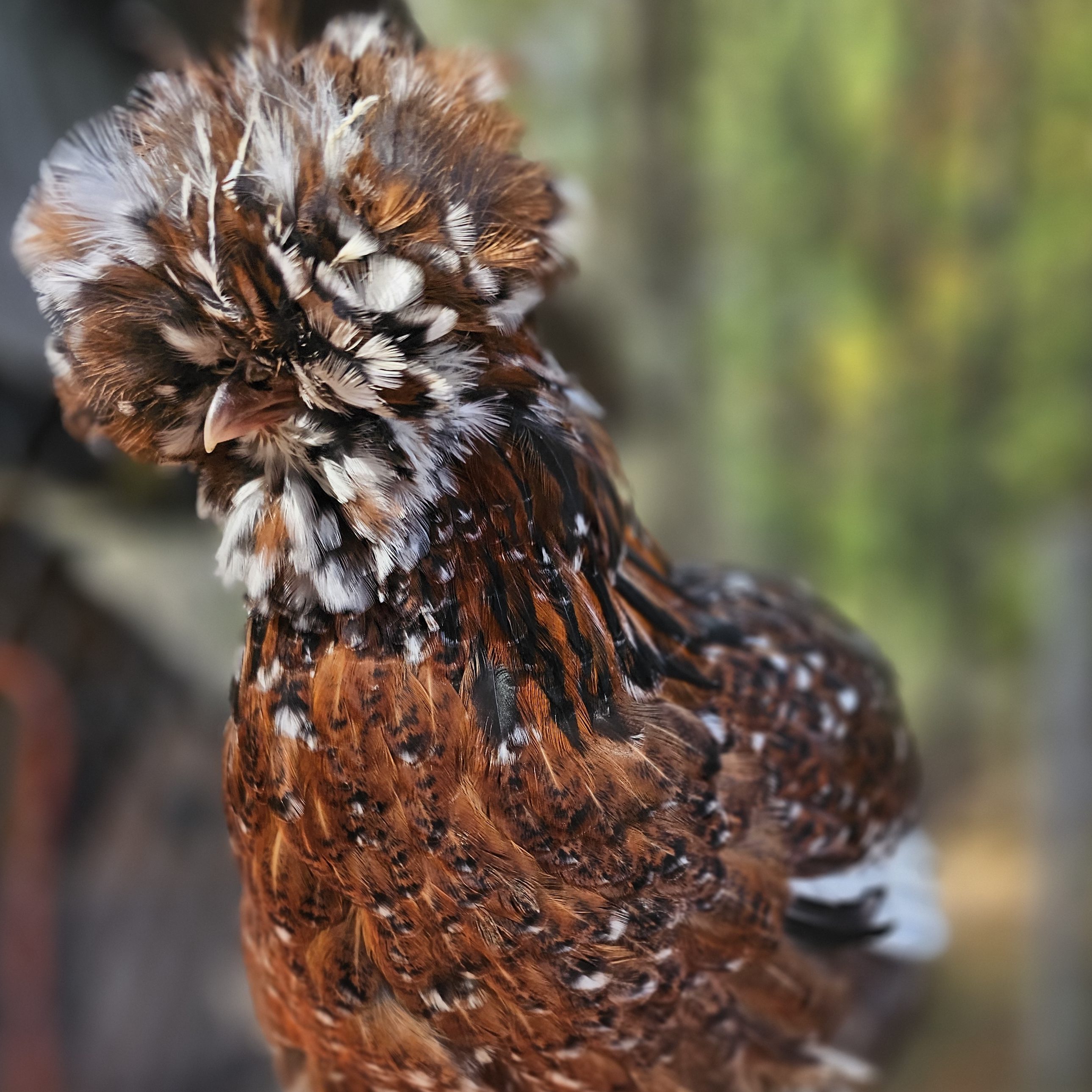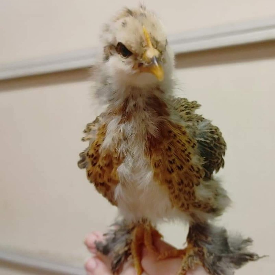 Mille Fleur Bantan Cochins in Smooth and Frizzle. My absolute top favorite breed. These are the birds that convert non bird people into bird people. These are the birds that even the anti-crazy chicken person will like. Voted most likely to perch on your shoulder, sit on your shoe, eat out of your hand, and dance for you. They are excellent brooders and mothers. I put specific focus on color and pattern and through years of selective breeding, I have achieved what I desire to see in my lines. I highly recommend these birds.