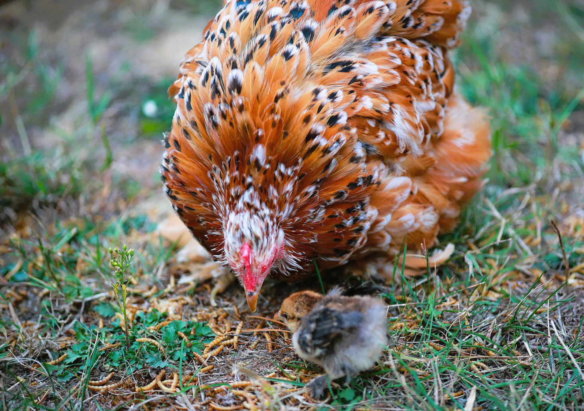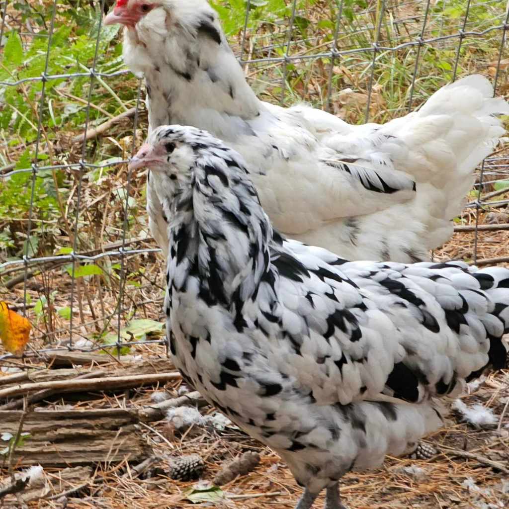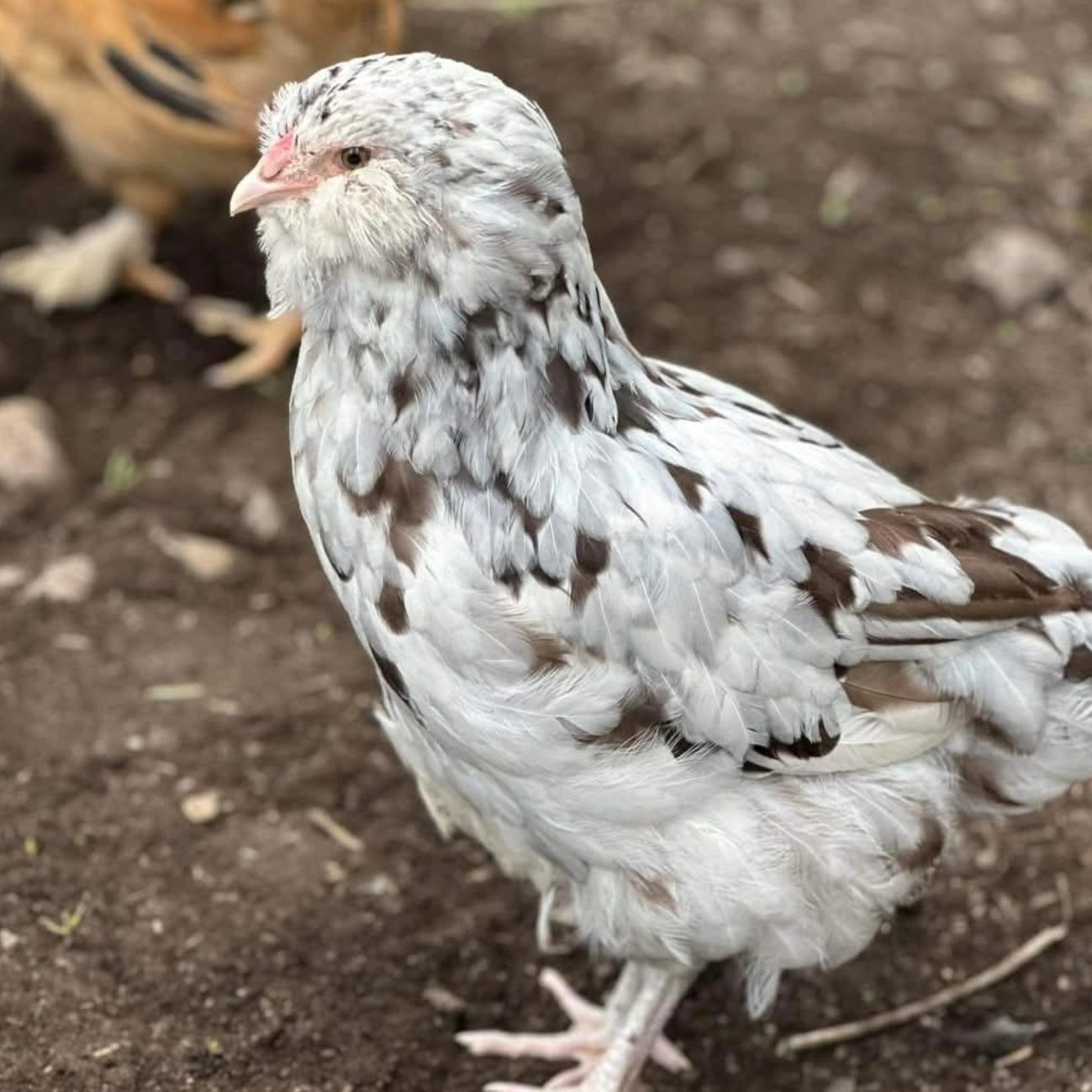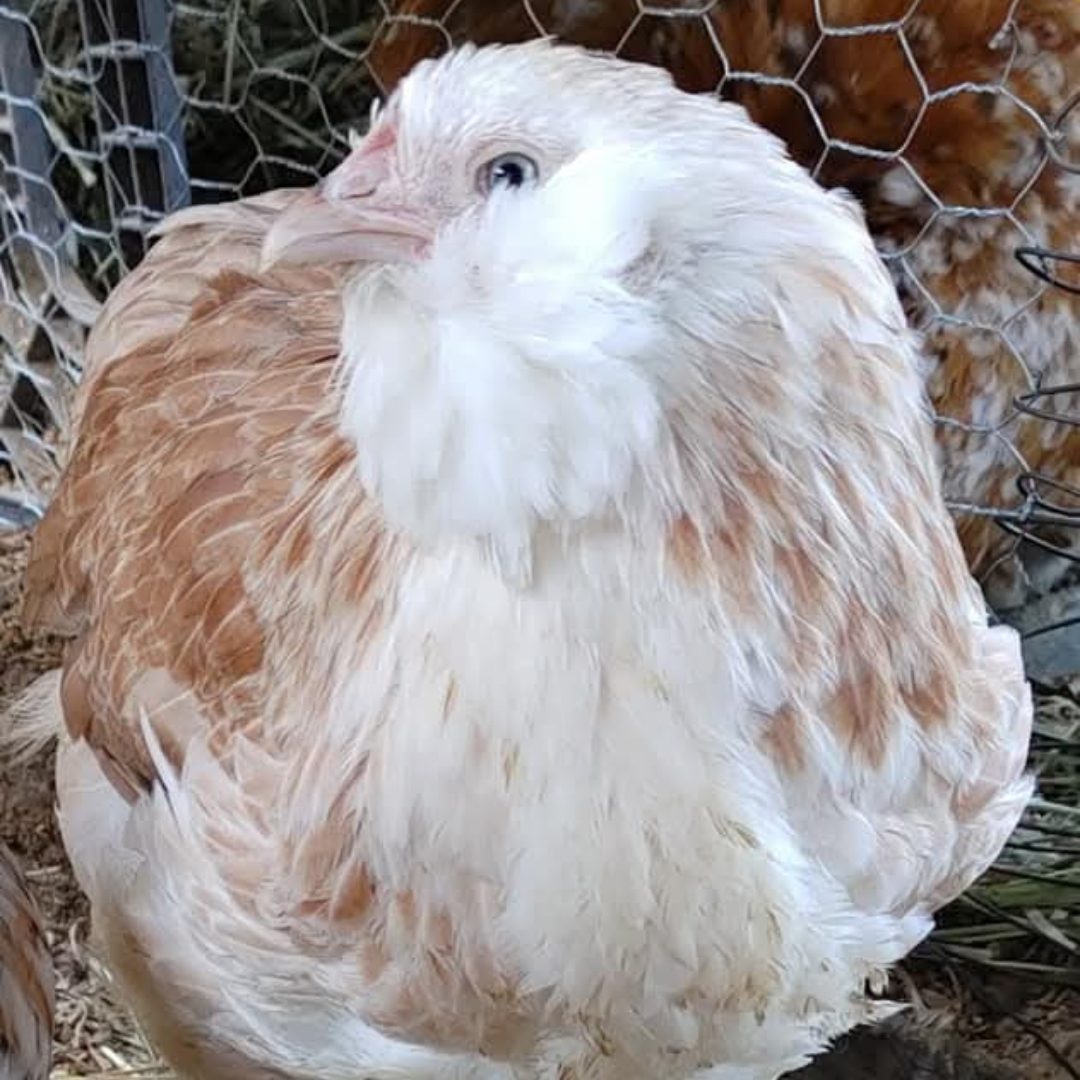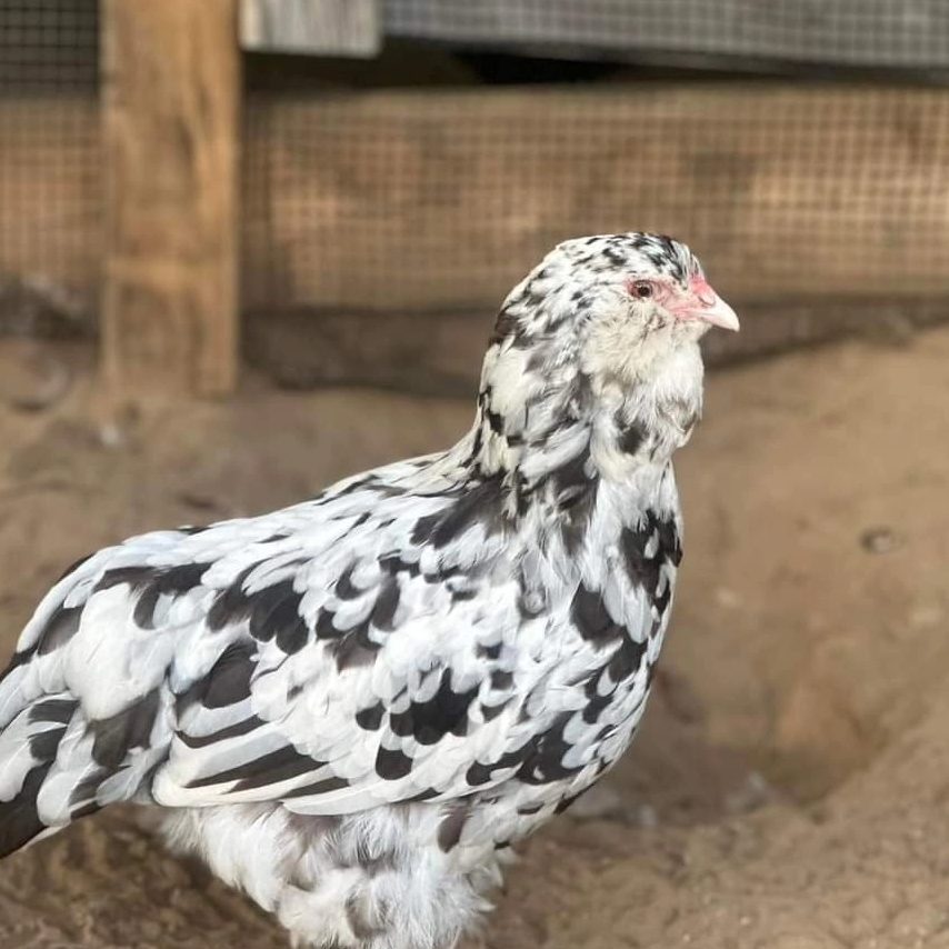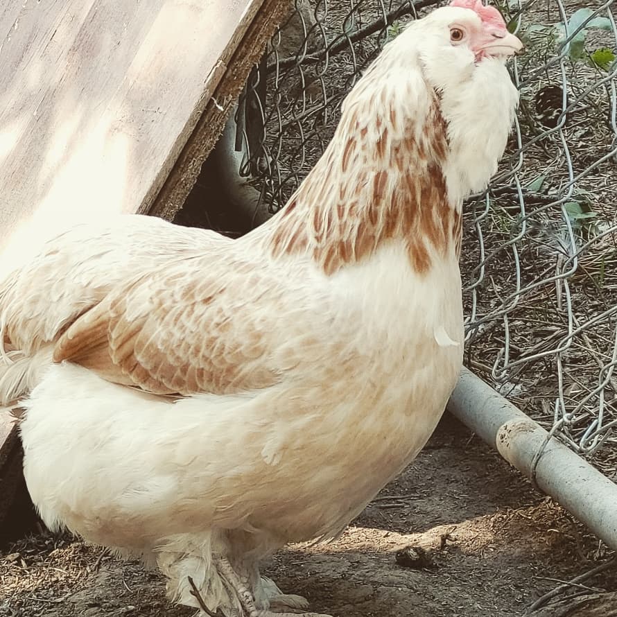 Large Fowl Salmon Faverolles. Focusing on Hen Line, Health/Vigor, Temperament, Dual Purpose/Industrious Birds. Considered a meat delicacy in France, where they originated. My Salmon Faverolles are among my favorite because the boys are absolutely docile, and the girls are so quirky. I lovingly call them my salmon fatties/ fat-rolls. There’s just something about those big fluffy cheeks and fluffy booties. Great for young families. My daughter can easily pick up our main rooster with his 3 inch spurs without hesitation or fear. I have spent years selecting only the nicest boys to breed, and only the healthiest birds moving forward.
