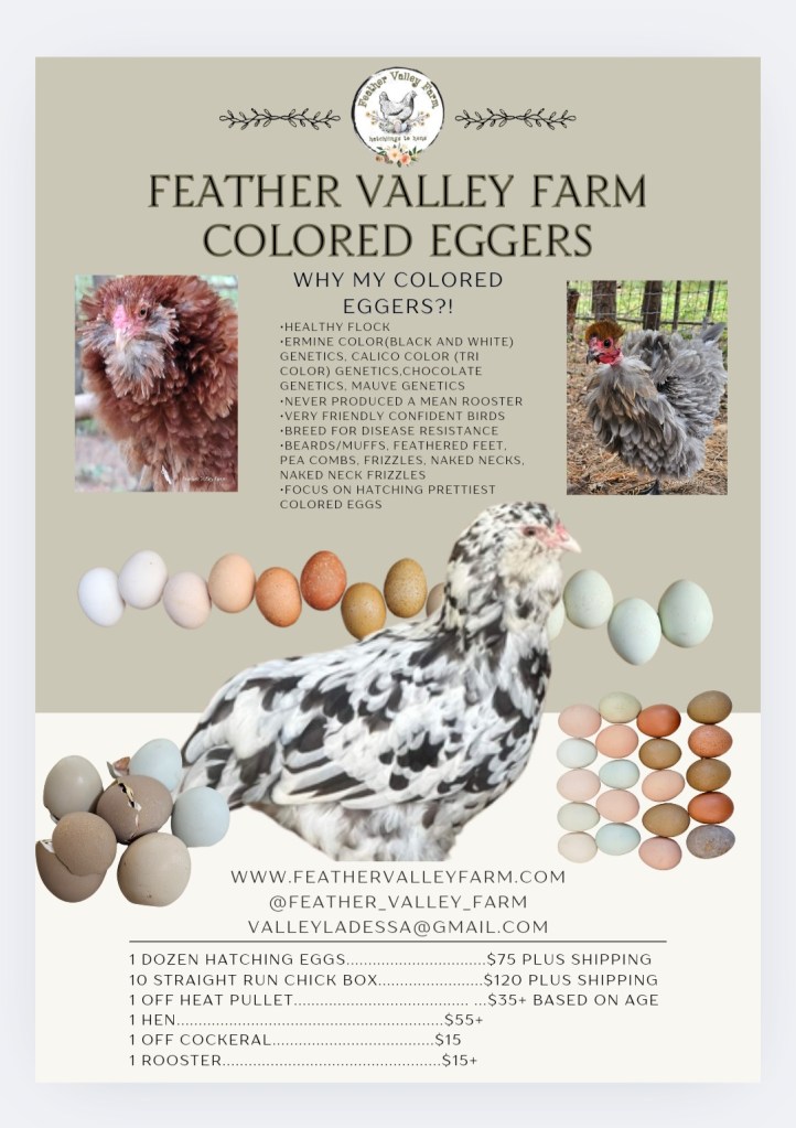 Currently, I am accepting $20 for hatching egg pre-orders, (See prices on “About Us” page) Or 20% of total for live bird orders, including chick boxes. (Minimum of 10 for shipped chicks) Off heat older chicks are available for pre-order. Some breeds can be sexed, some cannot. Minimum of four locally. And 4-7 for shipping (depends on how many can comfortably fit in the box). Juveniles and adults are not available for pre-order.